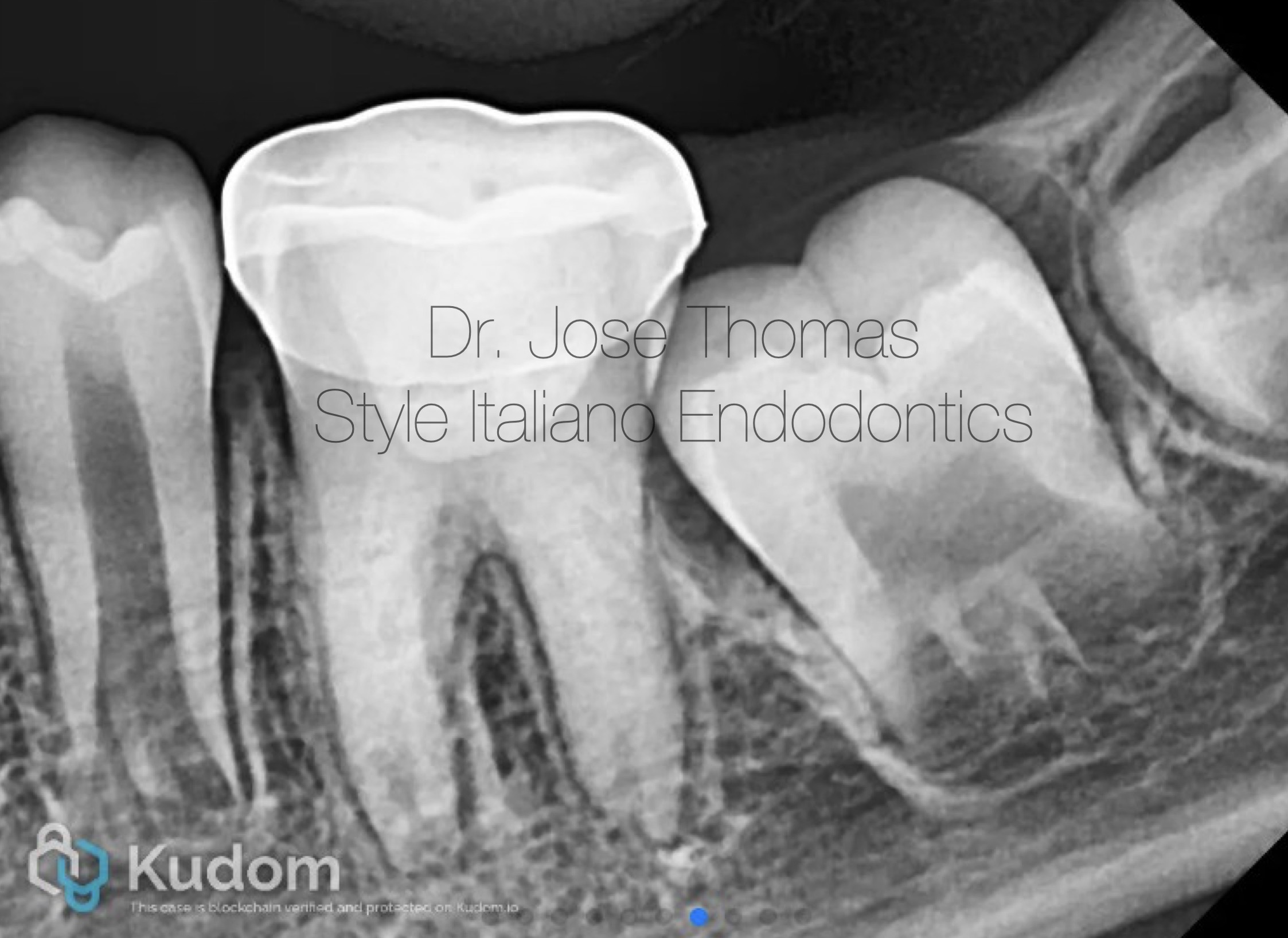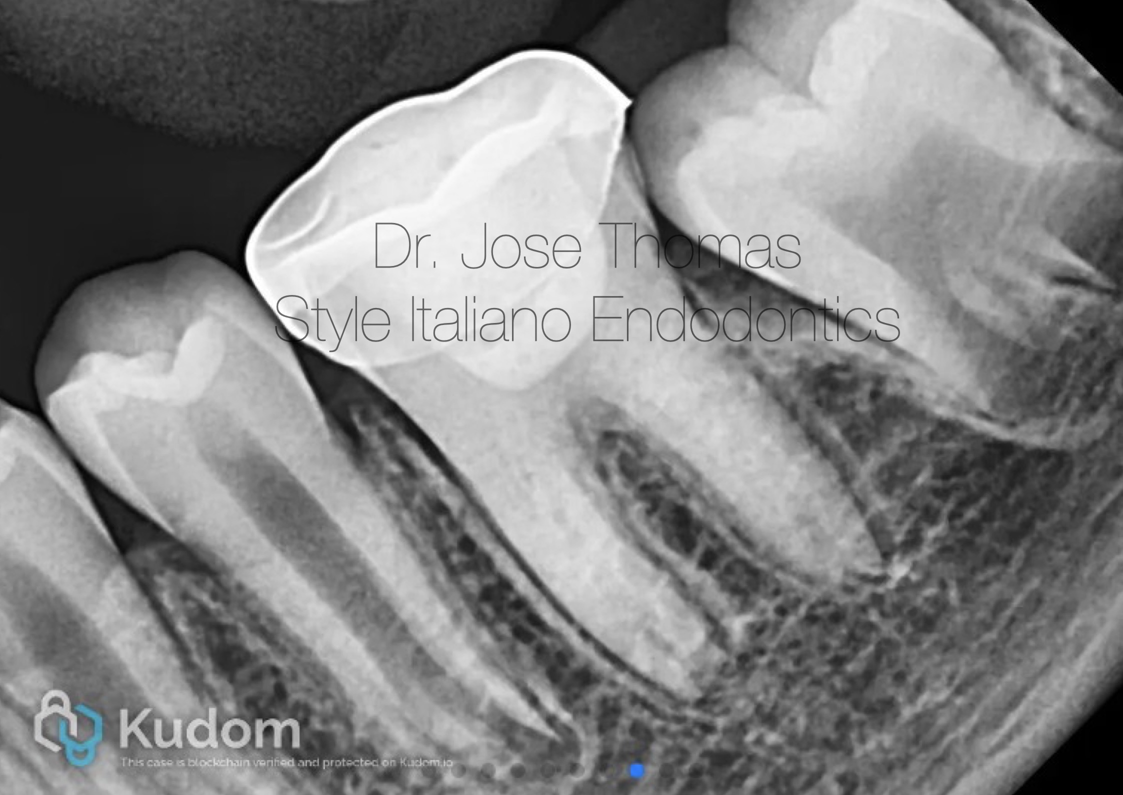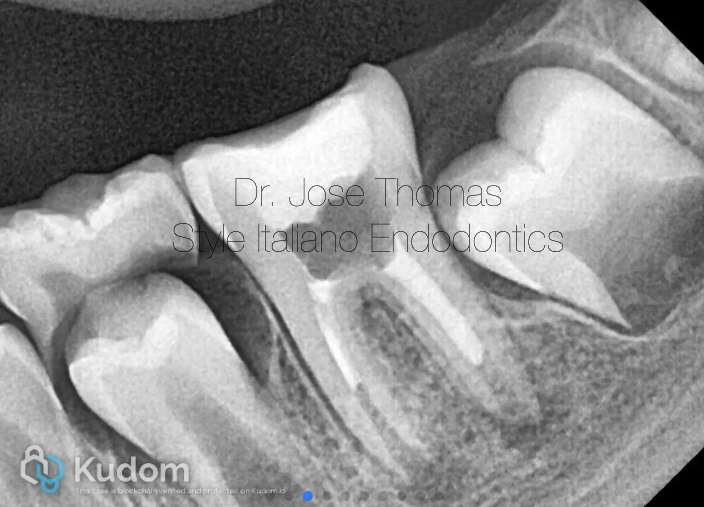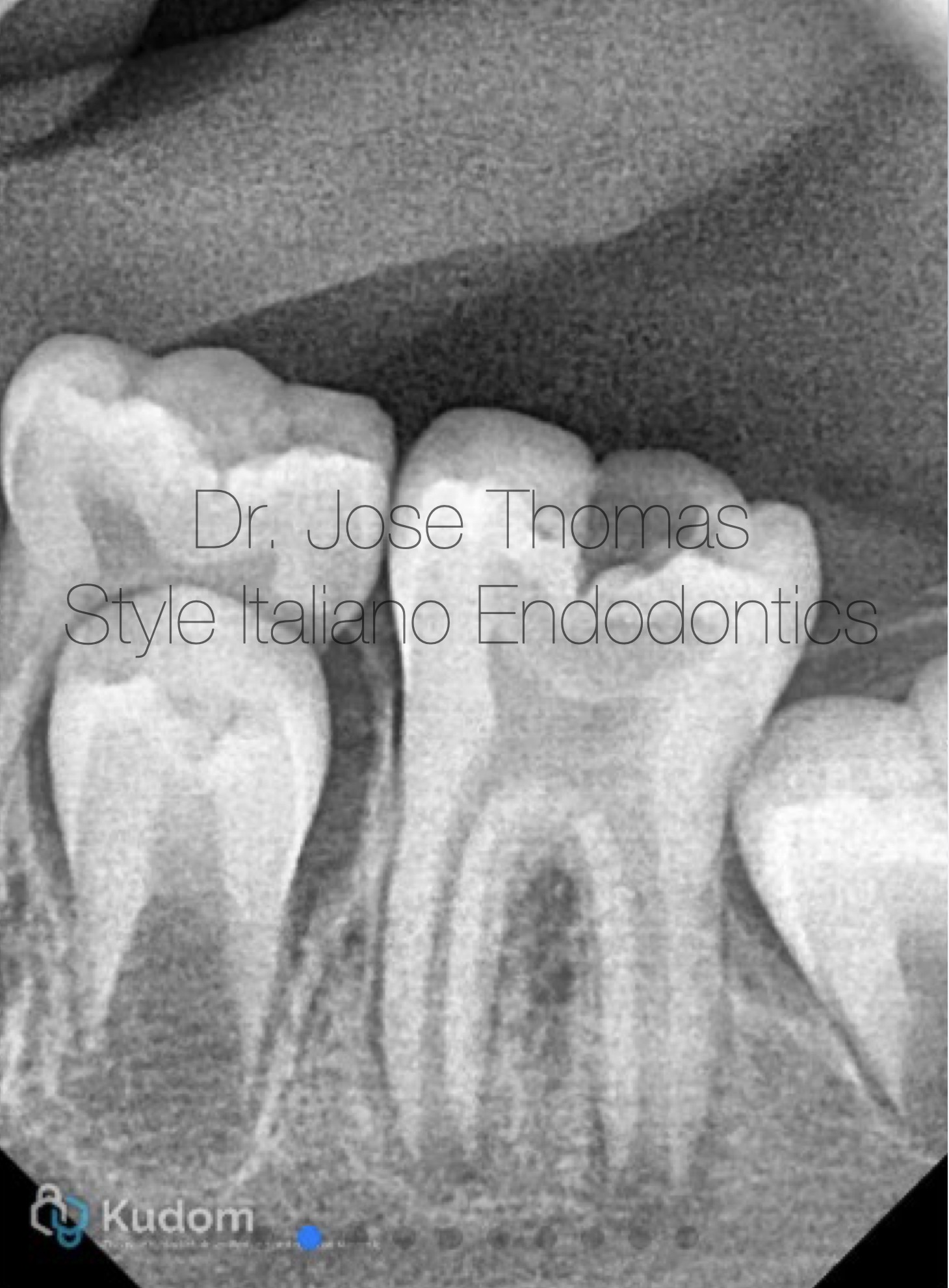 Xray shows the placement of calcium hydroxide medicament in the canals.