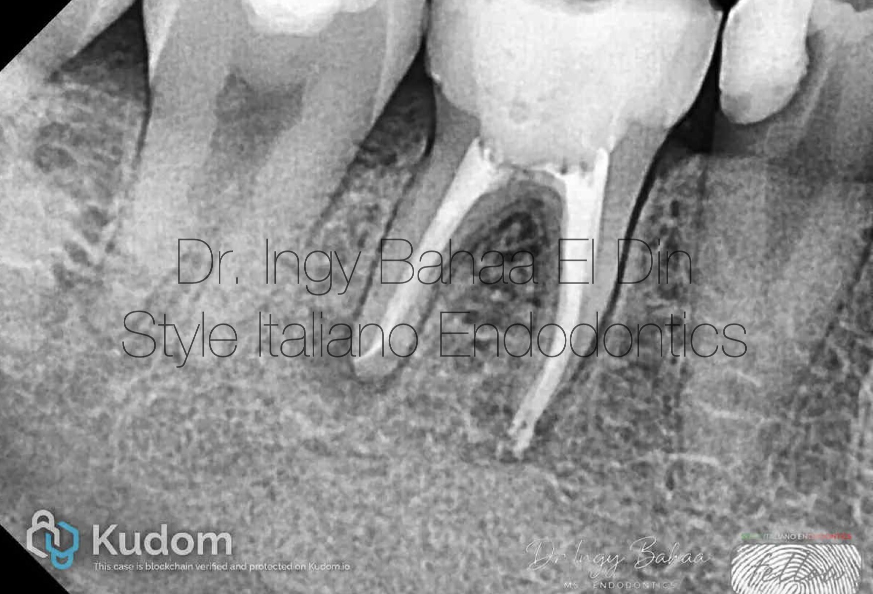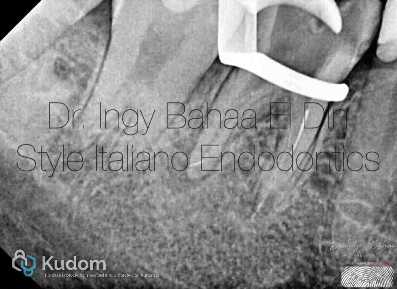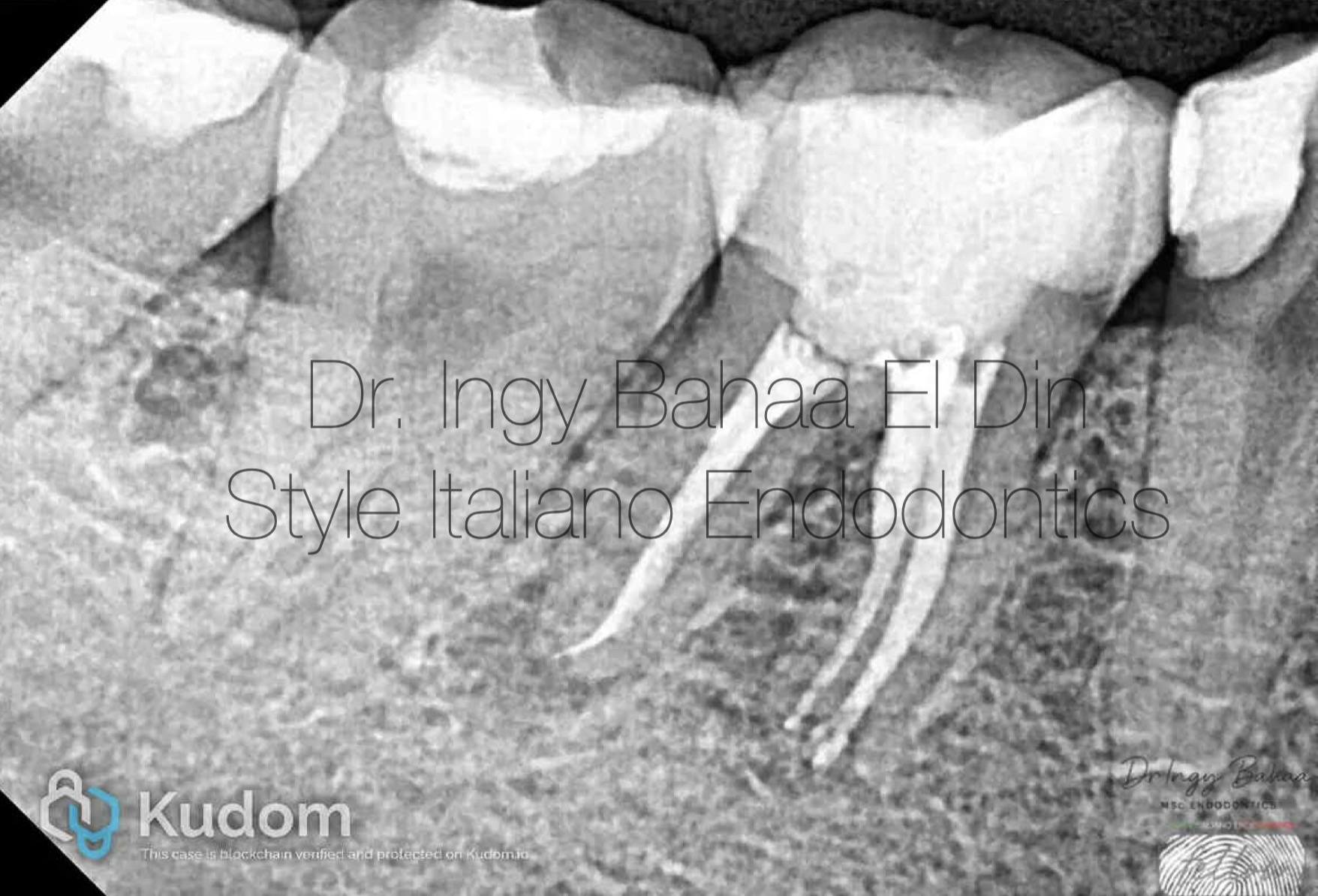 Case:  Referred 25 years old patient came to our clinic with pain on Biting related to lower right first molar , stating a previous endodontic treatment done a year ago with pain on biting ever since. A Periapical Radiographic Xray (  fig1 ) showed obvious widening in lamina dura around mesial and distal root and mild abscesses related to mesial and distal roots .