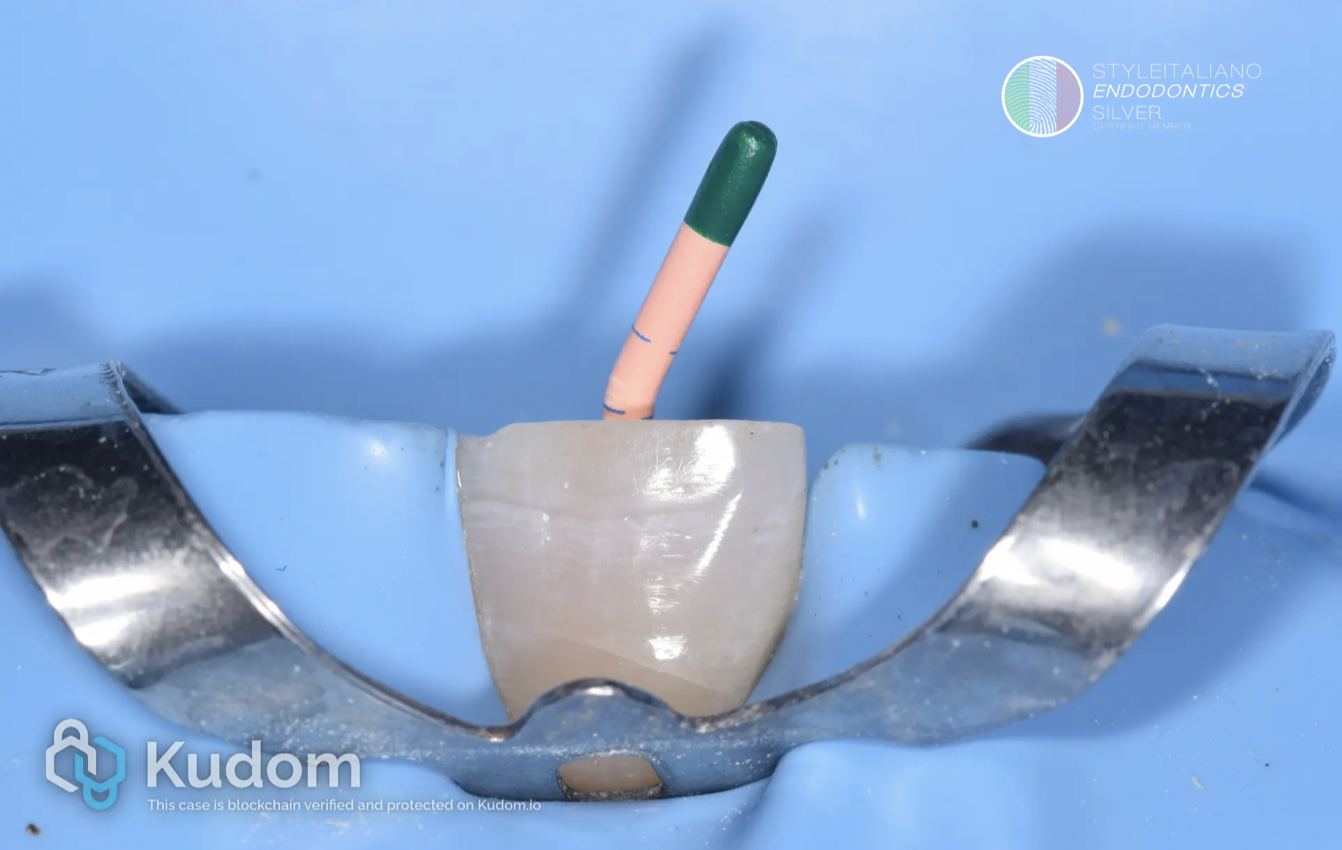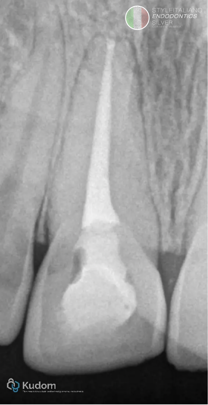 Pre-op X-Ray showed upper right central incisor with normal periapical status