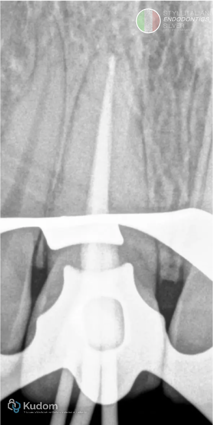 Final obturation and the gutta-percha condensed 1mm below the orifice.