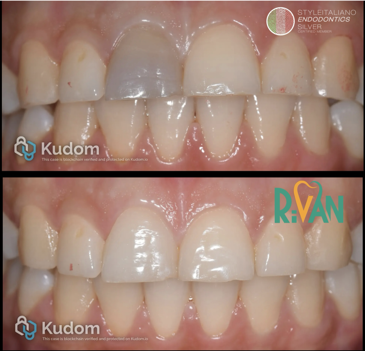 Clinically the patient chief complain suffering from grayish discoloration of the upper right central incisor with no signs and symptoms of any pain and tenderness, Vitality test was done to the tooth with ethyl chloride and the result showed negative response (the tooth is non vital).