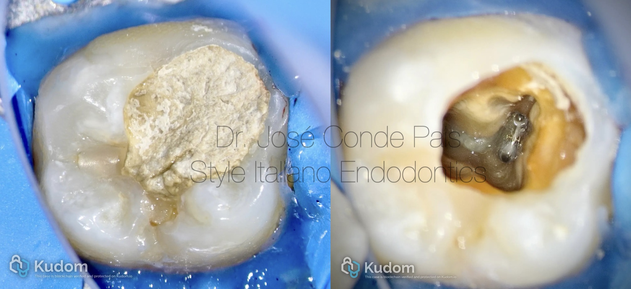 After removal of the temporary material, the access cavity was re-evaluated, allowing proper visualization of the pulp chamber and underlying anatomy.
