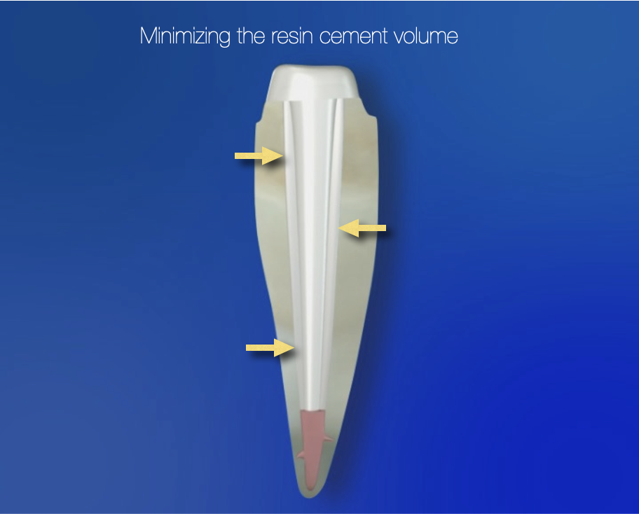 - Stress Distribution: By maximizing the post’s resistant section and minimizing the resin cement volume, the system achieves a more homogeneous stress distribution under occlusal loading.