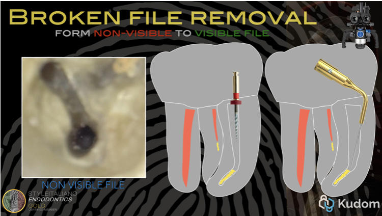 Clinical video demonstrating the step-by-step retrieval of a non-visible separated instrument, illustrating the process of gradually converting the fragment from non-visible to fully visible and ultimately removing it safely. Each stage highlights key techniques, including coronal flaring, careful troughing, pre-bending of ultrasonic tips, and conservative dentin management to ensure predictable and safe outcomes.