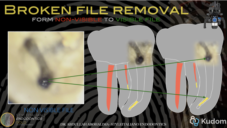 Successful retrieval of a separated instrument depends on careful case selection, strategic planning, and conservative dentin management. This article presents a clinical approach for converting a non-visible separated instrument into a visible and retrievable fragment through controlled dentin modification and enhanced visualization, ensuring a safe and predictable outcome.